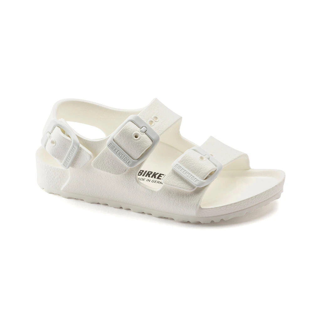 The BIRKENSTOCK Milano – a classic back-strap sandal with functional style for kids. Modeled on the cork original, this back-strap sandal is made from ultra lightweight and highly flexible EVA. These sandals are shock absorbing, waterproof, and skin-friendly. Wear them at the beach, in the backyard, or by the pool. Sandals for all-day play!