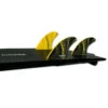 The raked side fins produce exceptional speed and drive, while the smaller centre fin on the medium and large template offer quick release through turns.