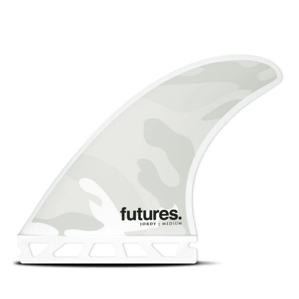 The Jordy Signature (M), designed by championship tour surfer Jordy Smith, is a medium sized fin in the Rake template category. This set is the daily driver for Jordy’s assault on the World Tour. The Honeycomb construction provides a balanced flex pattern, perfectly suited for Jordy’s smooth lines. The center fin is smaller than the side fins for increased maneuverability. This is the smallest fin in our medium range.