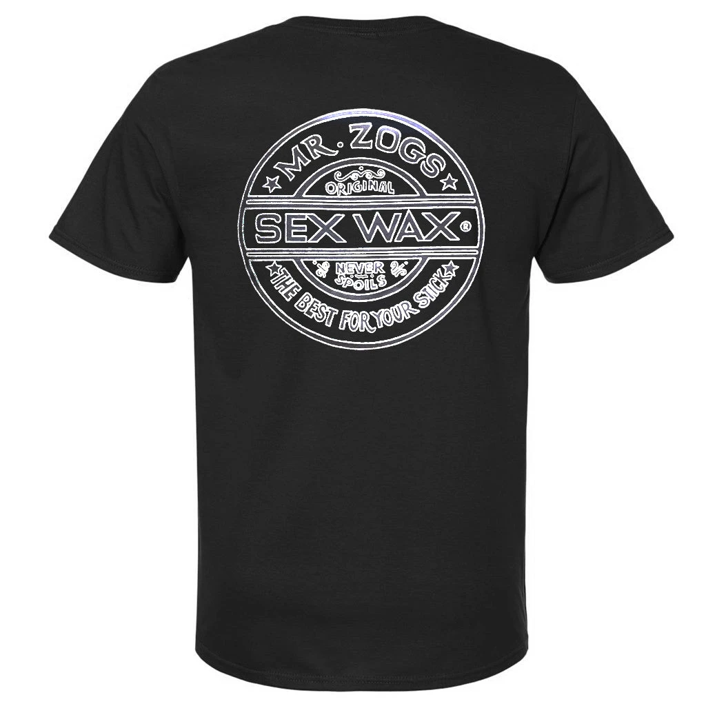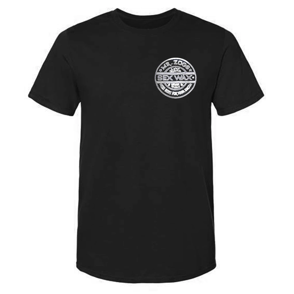 Screen print of the Sex Wax Circular logo with a retro pinstripe line. Small logo front print with large logo on back.