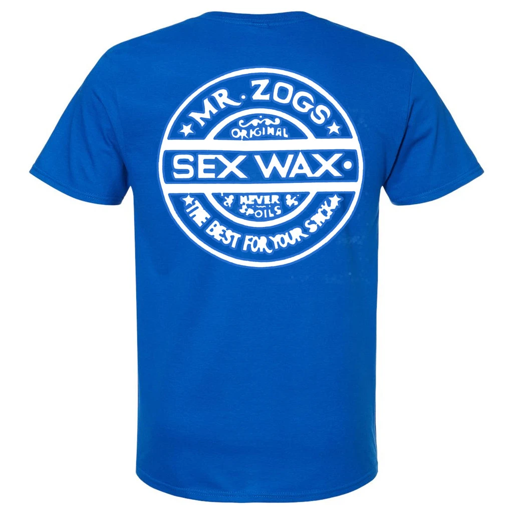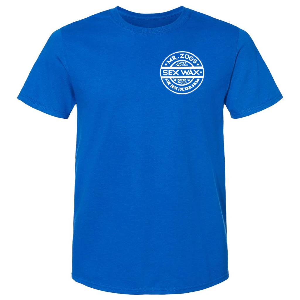 Screen print of the Sex Wax Circular logo with a retro pinstripe line. Small logo front print with large logo on back.