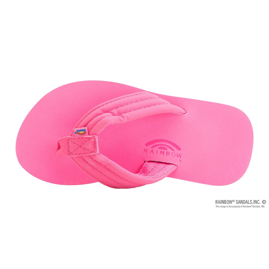 The Rainbow® logo is found on both the strap and is embossed in the top sole. The bottom is the Rainbow® Non-Slip sole. For the toddlers the four smallest sizes come with a back strap attached at the heel, if you don’t need it, just cut it off!
