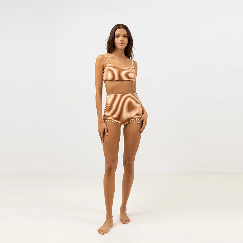 Rhythm Women’s Sunbather Stripe Crop Top – Chocolate