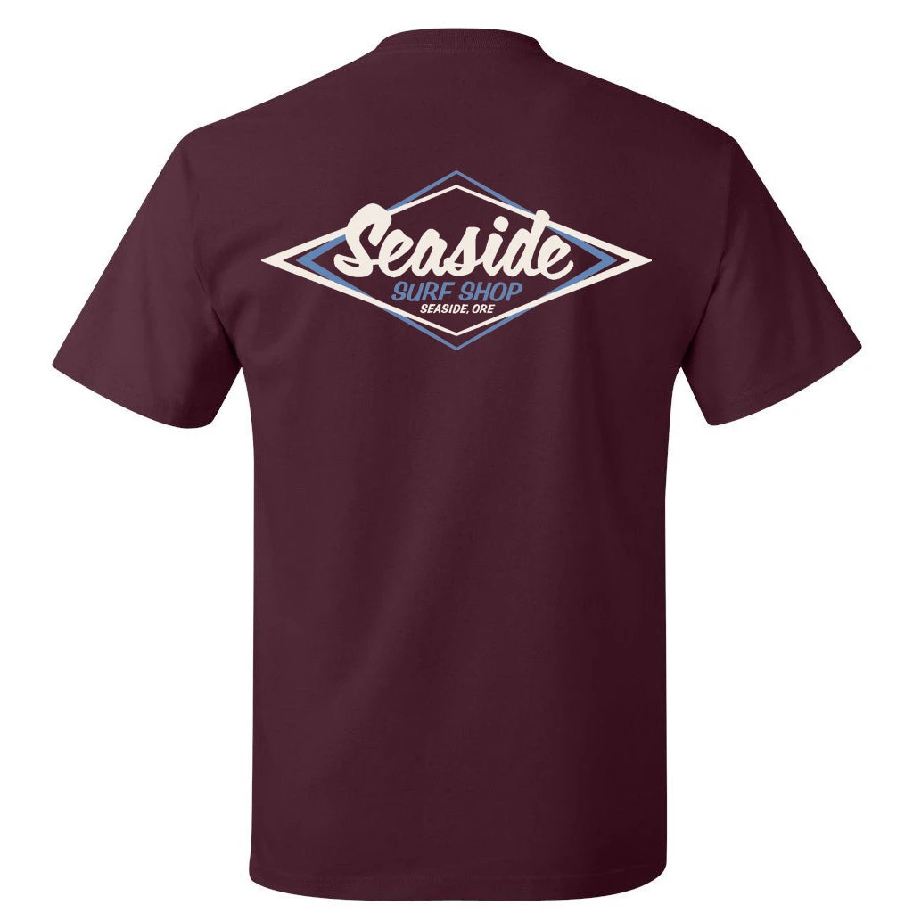 Seaside Surf Shop Mens Vintage Logo Tee – Maroon