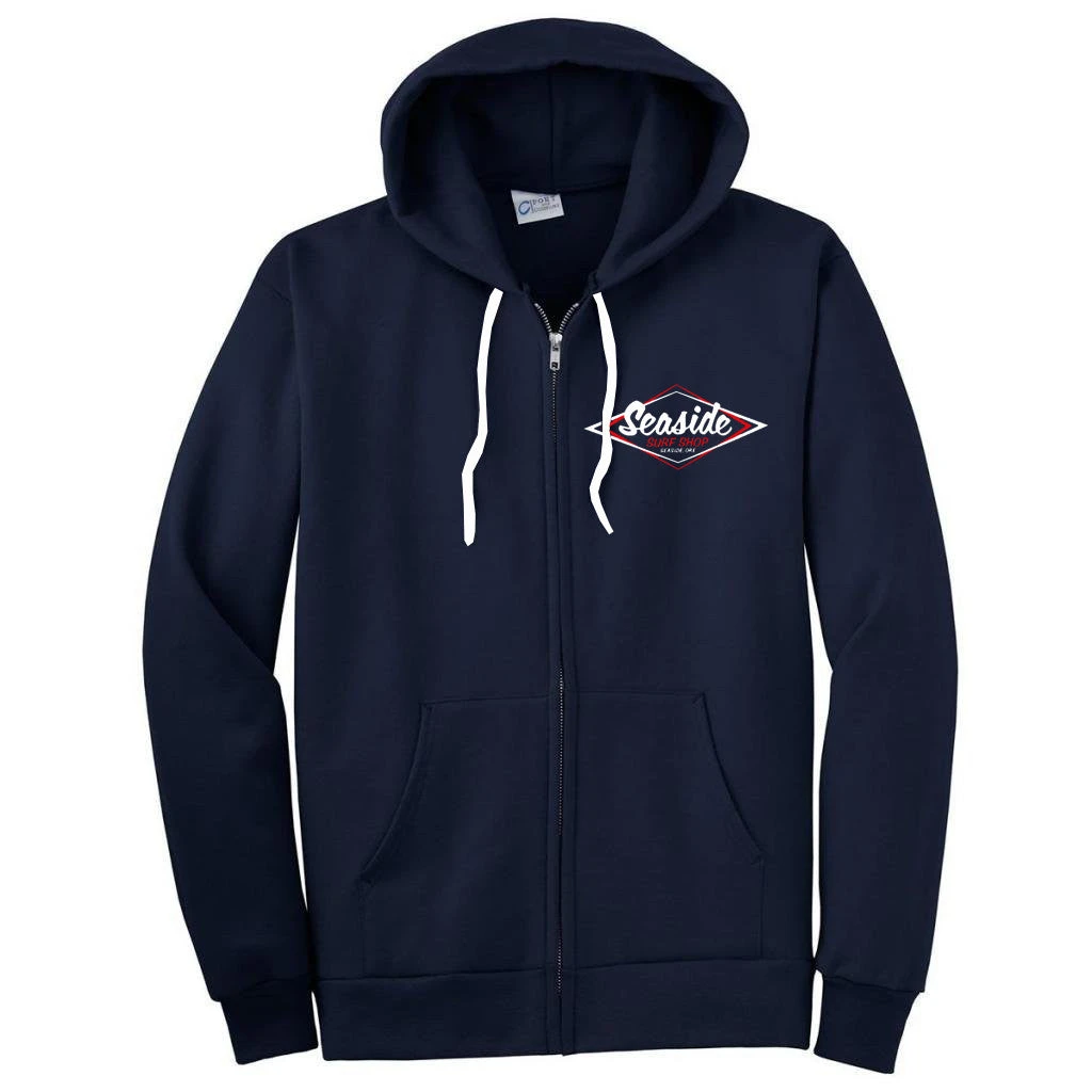 Seaside Surf Shop Mens Vintage Logo Zip Hoody – Navy
