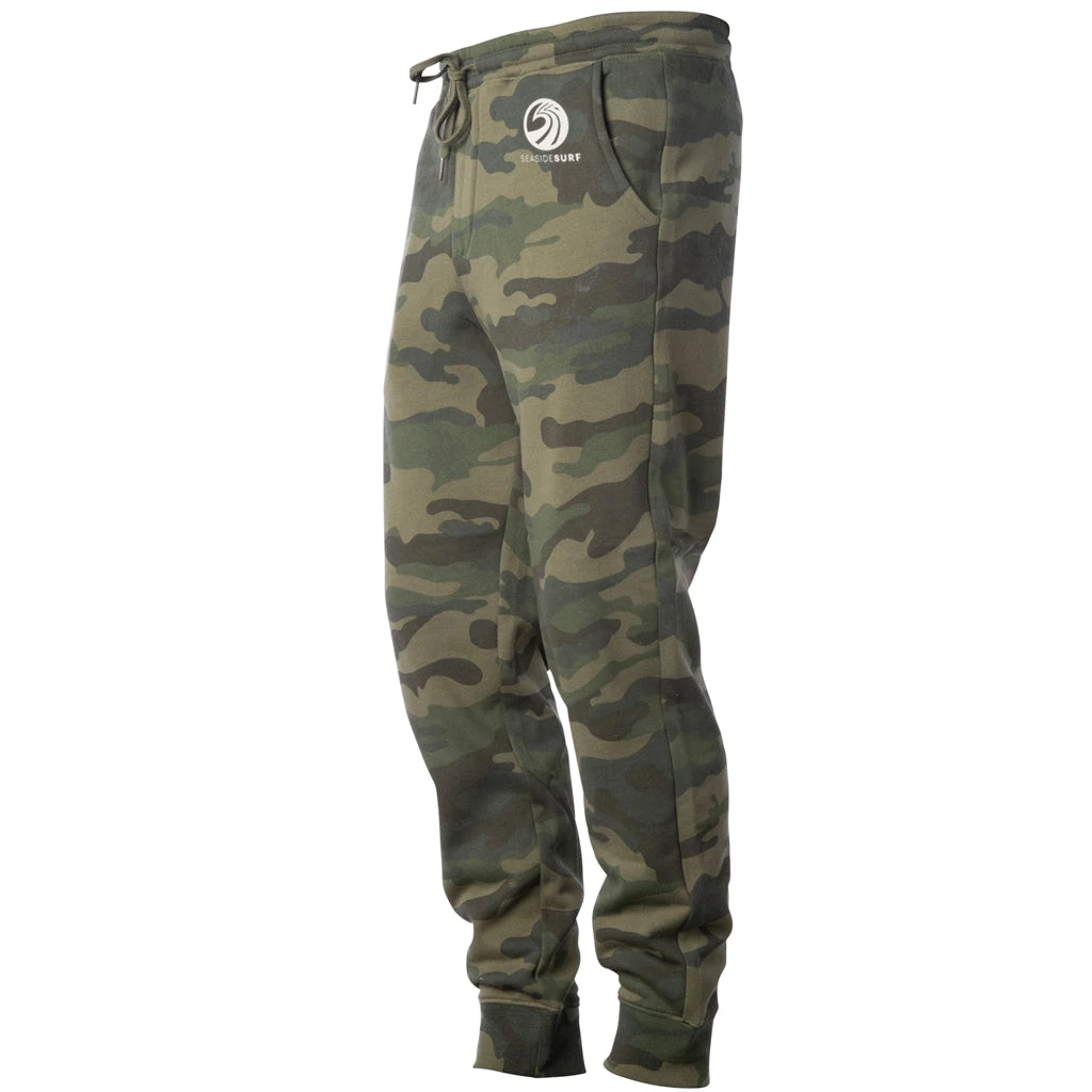 These camo jogger fleece pants from seaside surf featureย is made with 8.5oz 3-end Fleece in a relaxed fit. We use premium ring-spun cotton to achieve a smooth and stable fabric surface for printing. Completed with our quality construction, elastic waistband with shoestring drawcord, sewn eyelets, sewn fly detail, back pocket, jersey lined hand pockets, and 1×1 ribbing at cuffs in a relaxed fit.