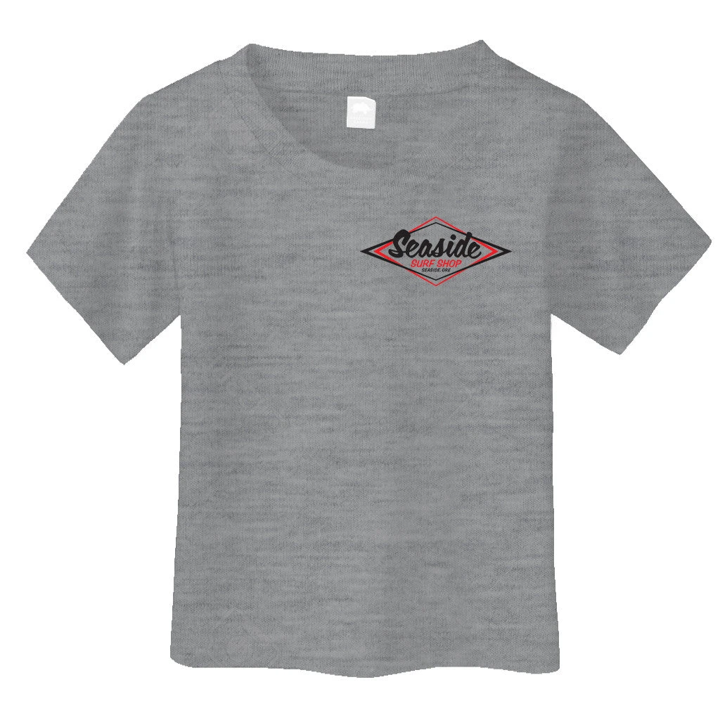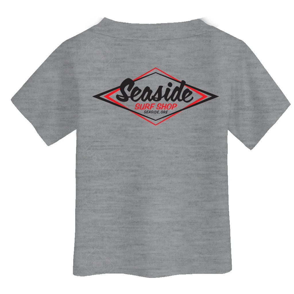 Seaside Surf’s Vintage Logo now screened on kids tee.