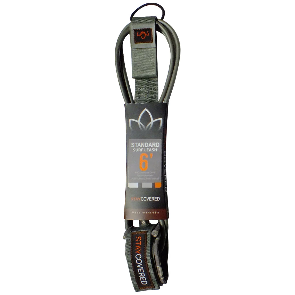 Stay Covered standard surf leashes are perfect for high performance surfing in small to medium sized waves, or for the beginner surfer in average surf. The standard leash is just what it says, a good leash for every surfer in smaller to medium sized conditions. Stay Covered uses a #90 durometer cord to create a slightly softer leash, reducing tangles and creating a perfect blend of stretch and memory retention.