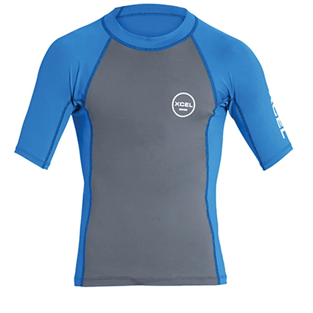 Xcel Youth Premium Stretch S/S UV Rashguard – Gunmetal/Sea Blue